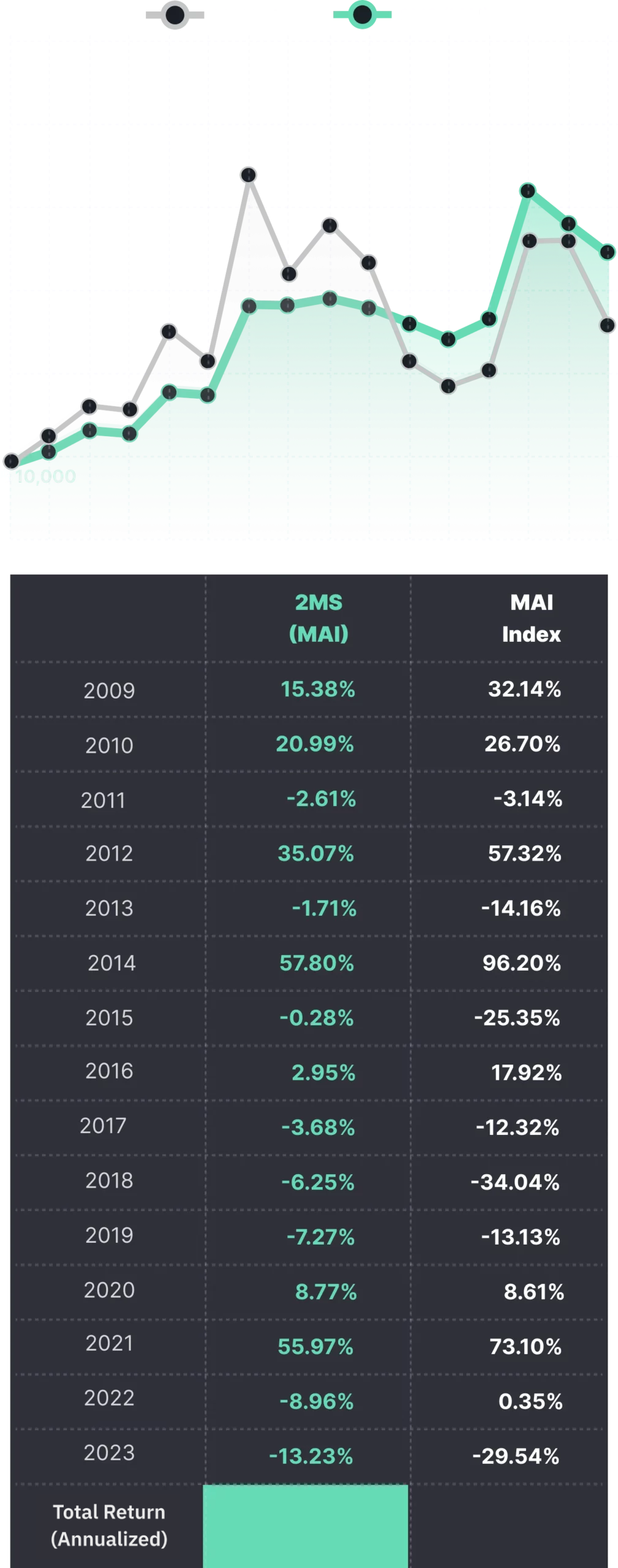 Outperform the market with 2MS Signal. Experience better investment results as our data-driven approachconsistently surpass market averages, ensuring your portfolio thrives in all conditions.
